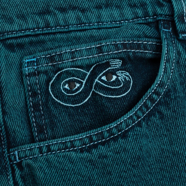 コットンデニム100% / エクストラバギーフィット / テーパードレッグ / 左ポケットコットン刺繍 / コインポケットコットン刺繍 / 後ポケット織りネーム / 前ジップ ・ 隠しポケット